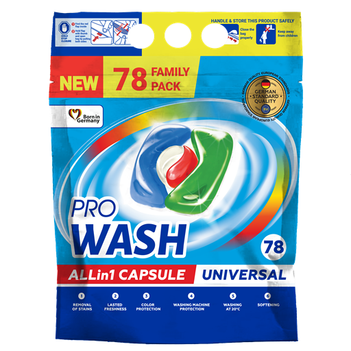 PRO WASH Univerzális Mosókapszula 4 in 1 – DOYPACK, 78 db / 78 mosás