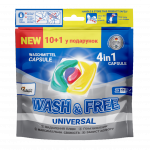 A Wash & Free 4in1 Univerzális mosókapszula egy többfunkciós, modern mosószermegoldás, amely négy hatást egyesít: alapos tisztítás, folteltávolítás, friss illat és színvédelem. A kapszulák előre adagoltak, így mindig a megfelelő mennyiség kerül a mosásba, méricskélés és pazarlás nélkül. Fehér és színes ruhákhoz egyaránt használható, praktikus kiszerelésben.
