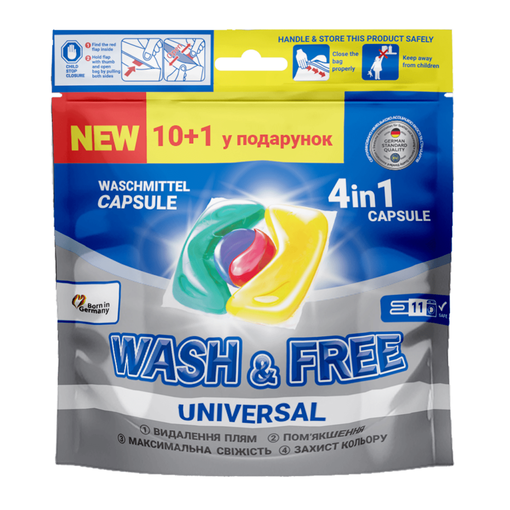 Wash & Free Mosókapszula 4in1 Univerzális 11db (11 mosás) – szavatossági idő: 2026.05.15