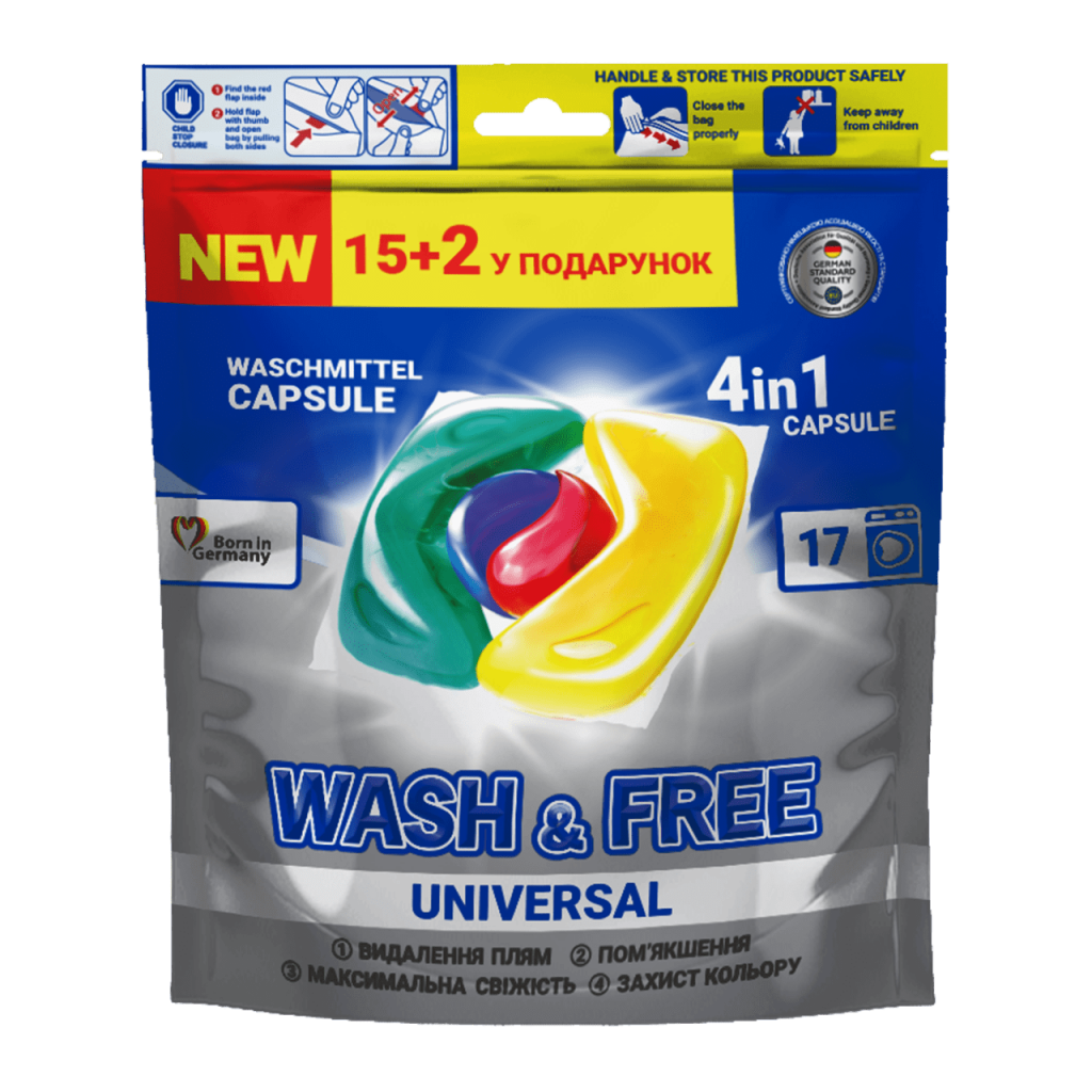 Wash & Free Mosókapszula 4in1 Univerzális 17db (17 mosás) – szavatossági idő: 2026.04.27