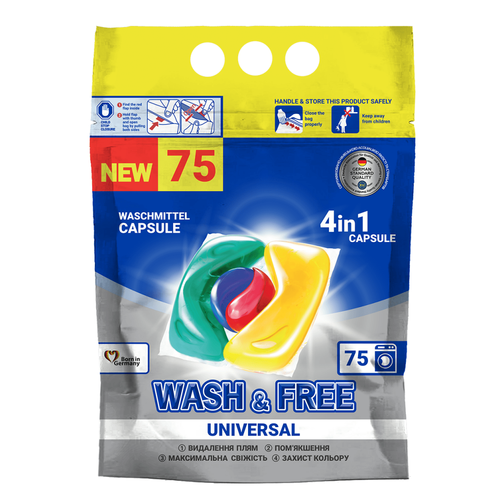 Wash & Free Univerzális mosókapszula 75db (75 mosás) – szavatossági idő: 2026.08.30